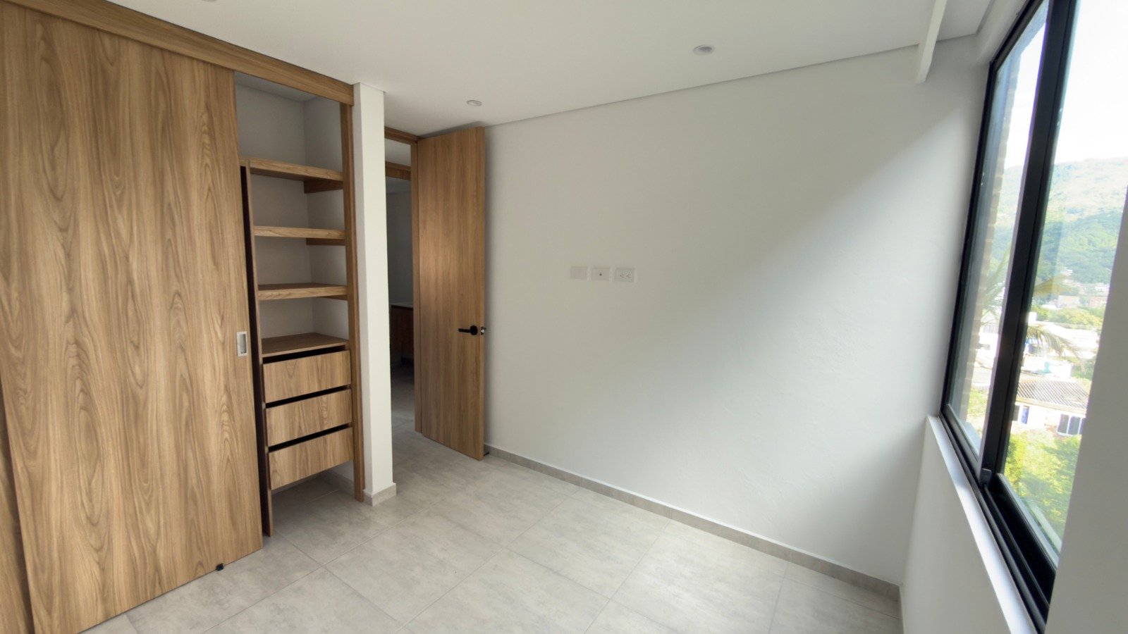 • Área: 83.50 M2 • 3 habitaciones • 1 Walk-in closet • 2 Baños completos • 1 Balcón en sala • Cocina Integral • Zona de ropas • Parqueadero y Deposito asignados • Vista interior del edificio (Parque Central)